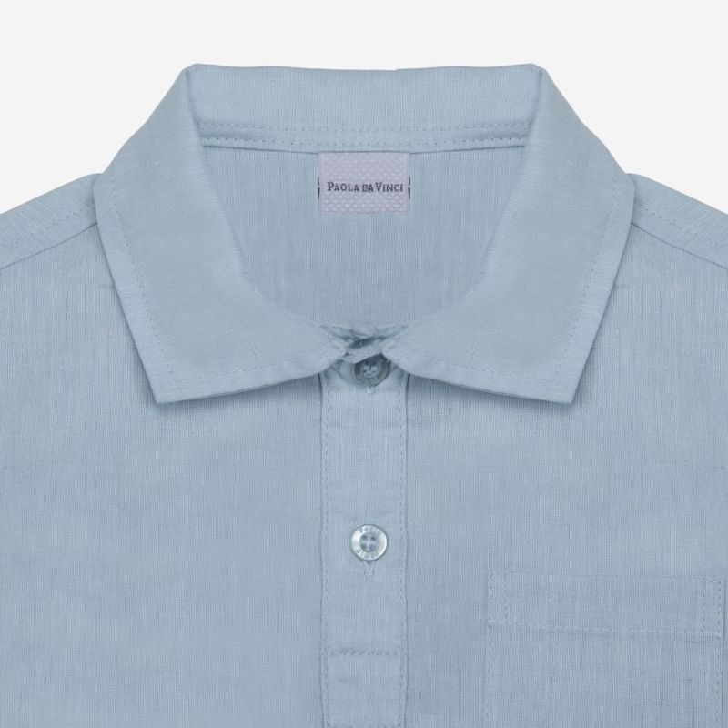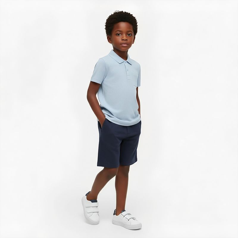 A modelagem clássica traz gola esporte estruturada, abertura frontal parcial com botões e manga curta, unindo praticidade e estilo. O bolso aplicado no peito adiciona um detalhe funcional e delicado, reforçando a estética atemporal da peça.
