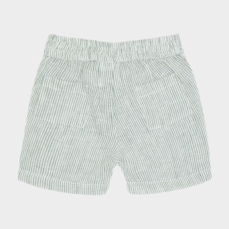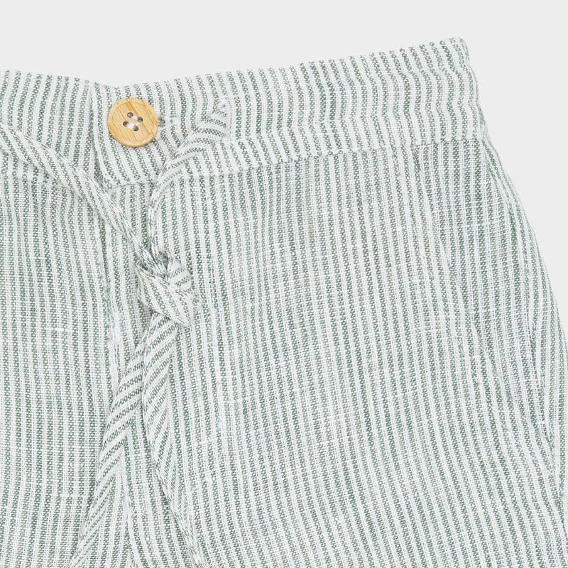 Com listras sutis em tom verde e off-white, a peça combina um visual elegante com um toque descontraído.