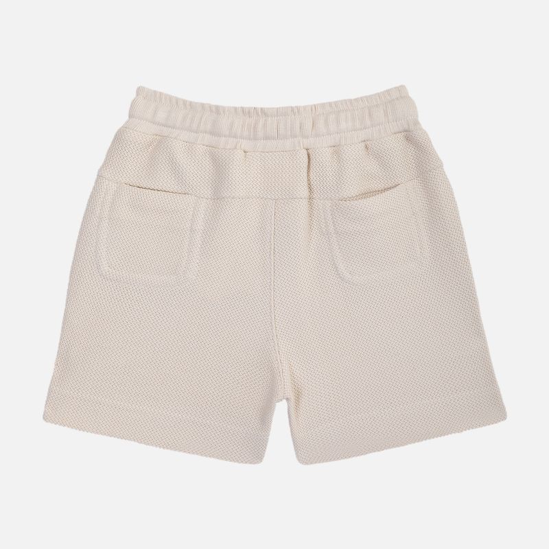 A Bermuda é uma peça que une conforto, elegância e praticidade em um design atemporal. Confeccionada em malha jacquard texturizada, possui toque macio e estrutura delicada que garante caimento impecável e liberdade de movimento para o bebê.