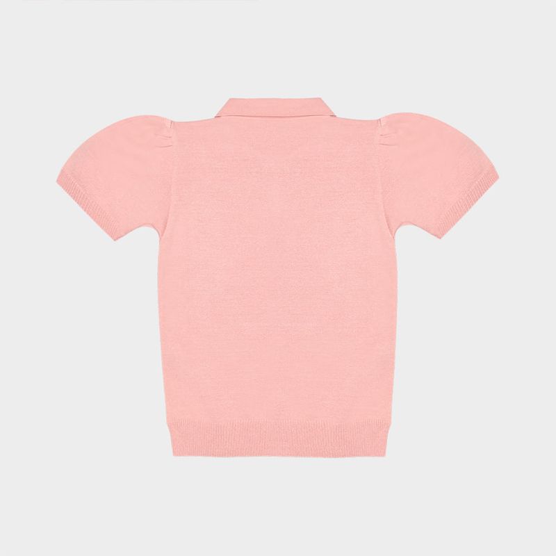 O modelo se destaca pela gola polo clássica e pelas mangas princesa, que criam um visual romântico e atemporal. O fechamento frontal com botões delicados adiciona charme ao design e facilita na hora de vestir. Uma peça versátil, que pode ser usada em composições mais elegantes ou em looks casuais.
