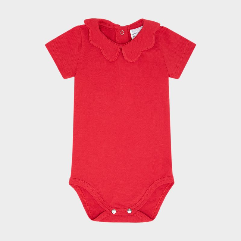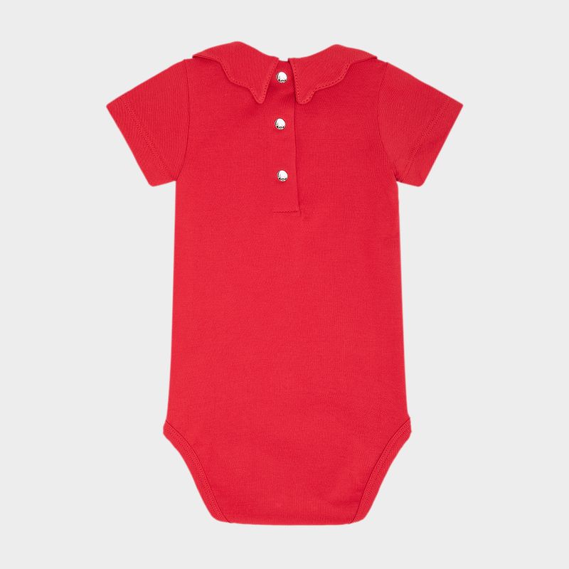 Seu destaque está na charmosa gola com recorte em formato de flor, que traz um toque lúdico e sofisticado ao visual. Para facilitar o vestir, a peça conta com abertura com botões de pressão nas costas e no entrepernas, proporcionando mais praticidade na rotina.