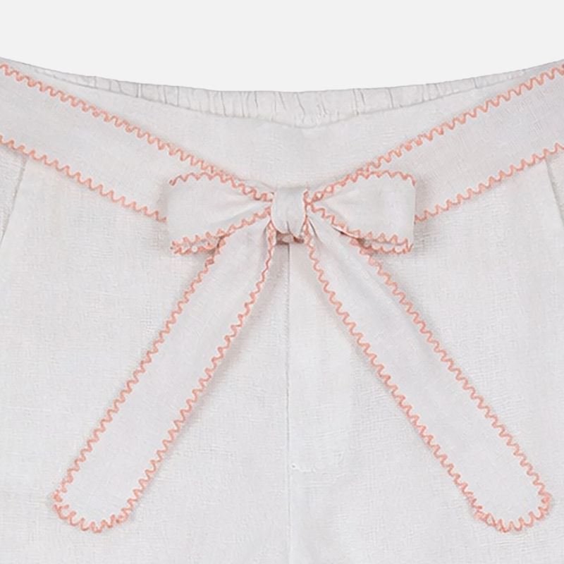 Calça bebê em puro linho branco confeccionada em linho 100%, uma peça delicada, fresca e extremamente confortável para os dias mais quentes. O tecido linho branco proporciona toque macio e excelente respirabilidade, cuidando da pele do bebê com suavidade. O destaque fica por conta da picueta em tom contrastante e do laço frontal, que trazem charme artesanal e elegância à peça.