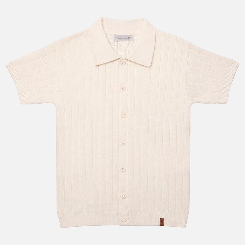 Camisa bebê masculina canelada, confeccionada em malha canelada que proporciona toque macio, conforto térmico e excelente respirabilidade. Na delicada cor off white, é uma peça atemporal e sofisticada, perfeita para compor produções elegantes desde os primeiros meses.