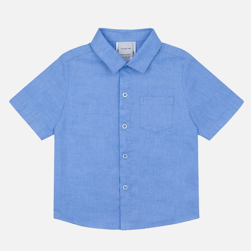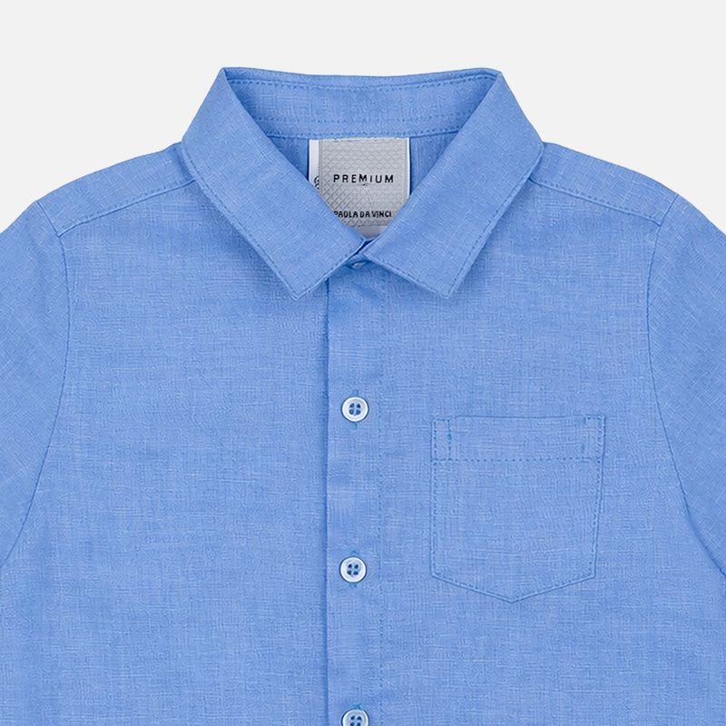 Camisa bebê puro linho confeccionada em linho natural, um tecido leve, fresco e respirável, perfeito para manter o bebê confortável em dias mais quentes. Na cor azul, transmite suavidade e elegância, sendo ideal para produções clássicas e sofisticadas, com toque delicado e acabamento premium característico da Paola da Vinci.