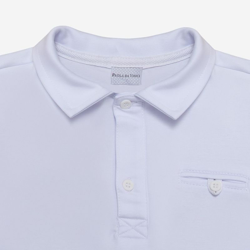 Possui gola polo estruturada, abertura frontal com botões e bolso embutido com lapela, que traz um charme extra à peça. O acabamento das mangas e da barra garante um caimento impecável.