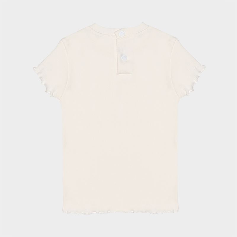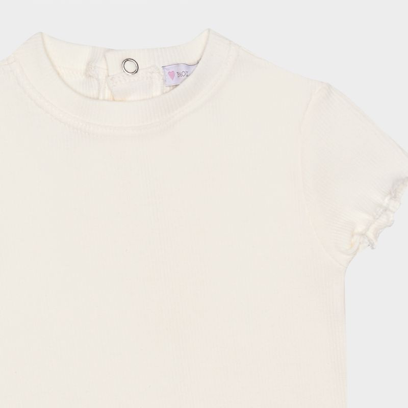 A Camiseta Canelada Moni com Frufru foi criada para unir conforto, delicadeza e sofisticação no dia a dia dos pequenos.