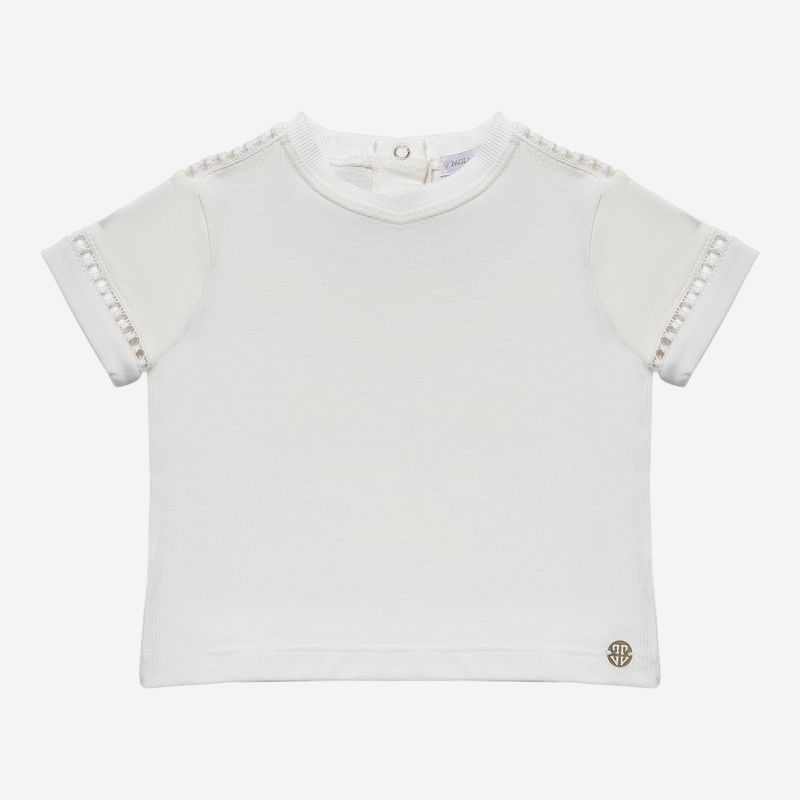 A Camiseta é uma peça refinada que une delicadeza e sofisticação ao vestuário infantil. Confeccionada em malha macia de algodão com elastano, proporciona toque suave, conforto absoluto e caimento impecável.