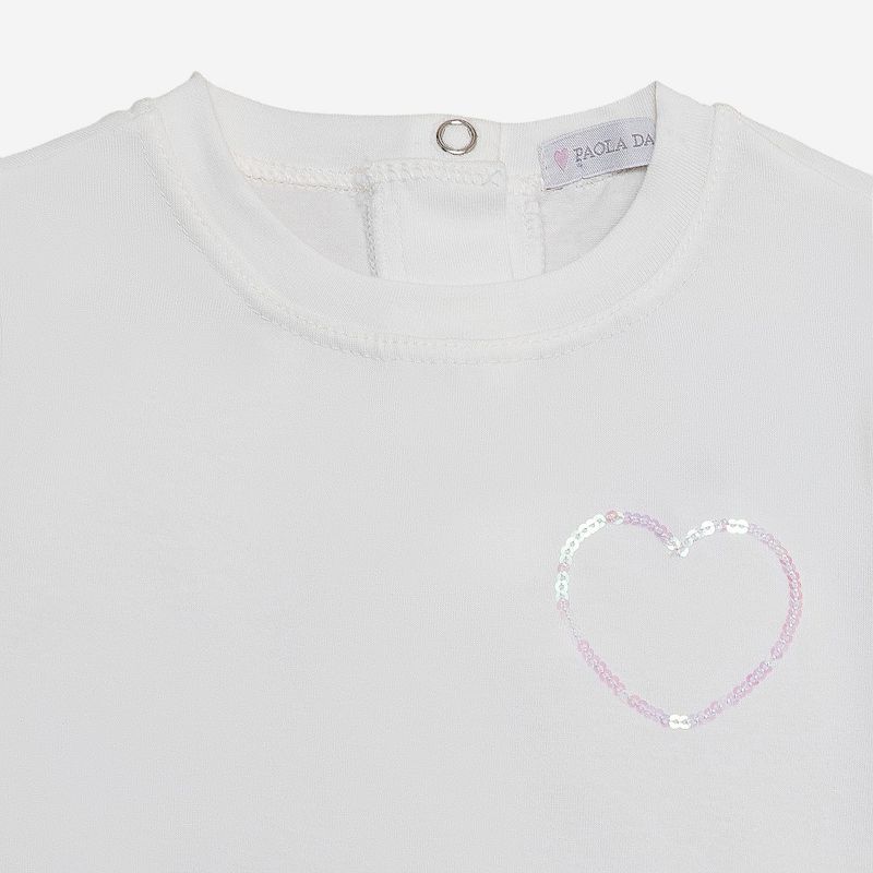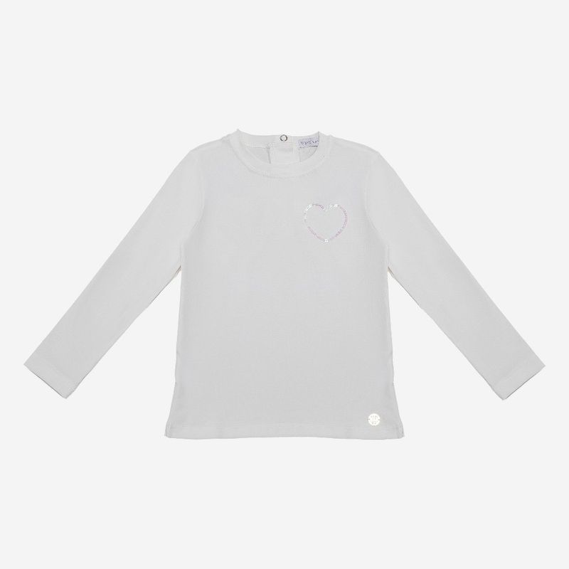 O destaque fica por conta do delicado bordado de coração em paetês no peito, que adiciona um charme especial à peça. Ideal para compor looks casuais sofisticados.