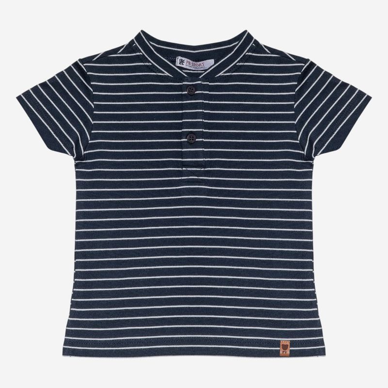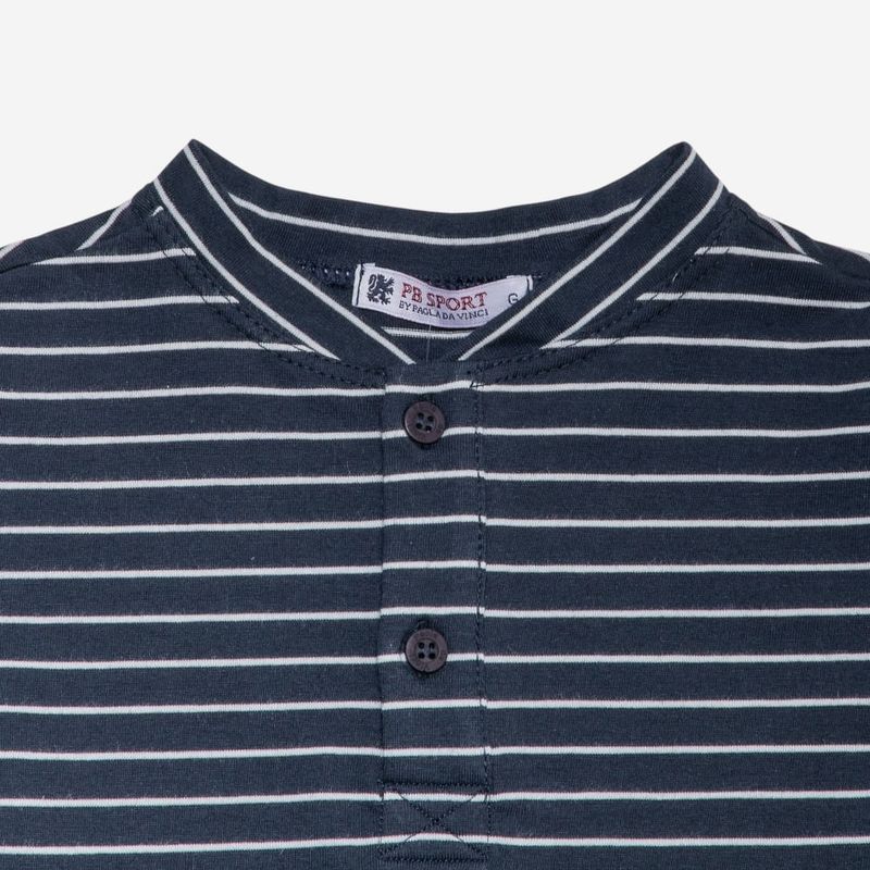 Apresenta padronagem de listras horizontais em azul marinho e branco, criando um visual atemporal e versátil. O modelo conta com vista frontal com abotoamento, gola estilo padre e acabamento delicado, garantindo caimento perfeito e praticidade na hora de vestir. Ideal para compor looks casuais sofisticados.