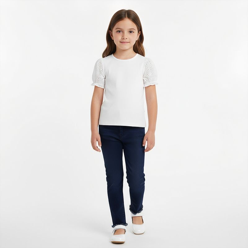 A camiseta é uma peça clássica e sofisticada, perfeita para compor looks delicados e cheios de charme. Confeccionada em malha de cotton premium, possui toque macio e caimento confortável, ideal para acompanhar a rotina das pequenas com leveza.