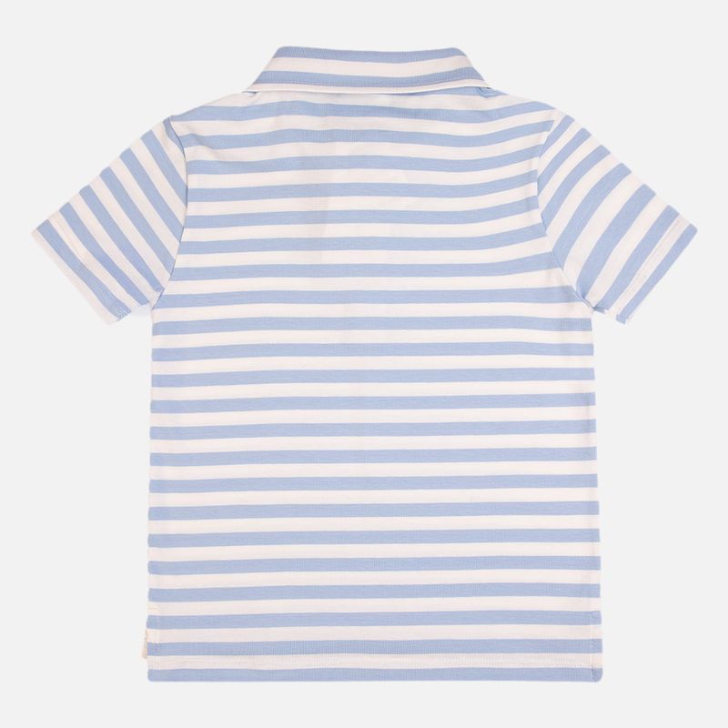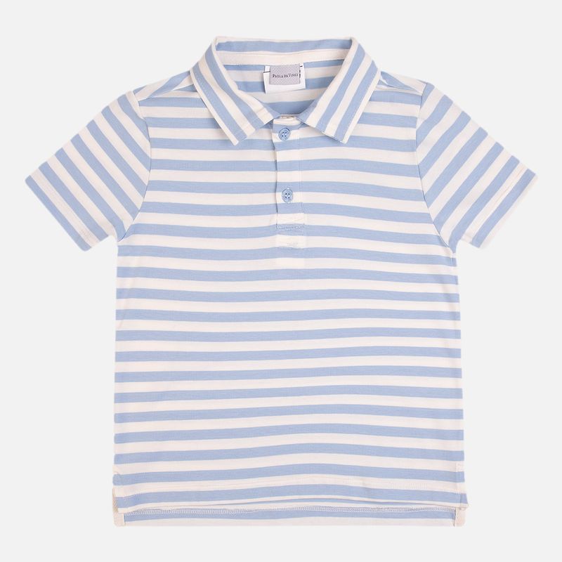 Camiseta polo infantil listrada azul é confeccionada em algodão, um tecido leve, macio e extremamente confortável, ideal para acompanhar os pequenos em todas as ocasiões.
