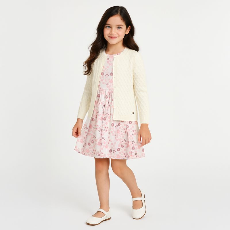 Com um visual romântico e atemporal, esse cardigan infantil feminino é o complemento ideal para vestidos, macacões ou combinações com calças e blusas. Sua modelagem pensada especialmente para bebês valorizam a delicadeza da infância com acabamentos impecáveis e botões funcionais, que facilitam na hora de vestir. O ponto em relevo traz sofisticação artesanal ao look, criando uma peça versátil que pode ser usada tanto em momentos especiais quanto no dia a dia com um toque extra de estilo.