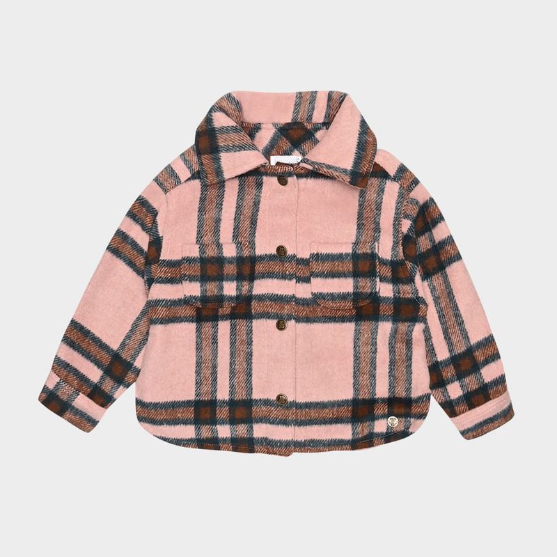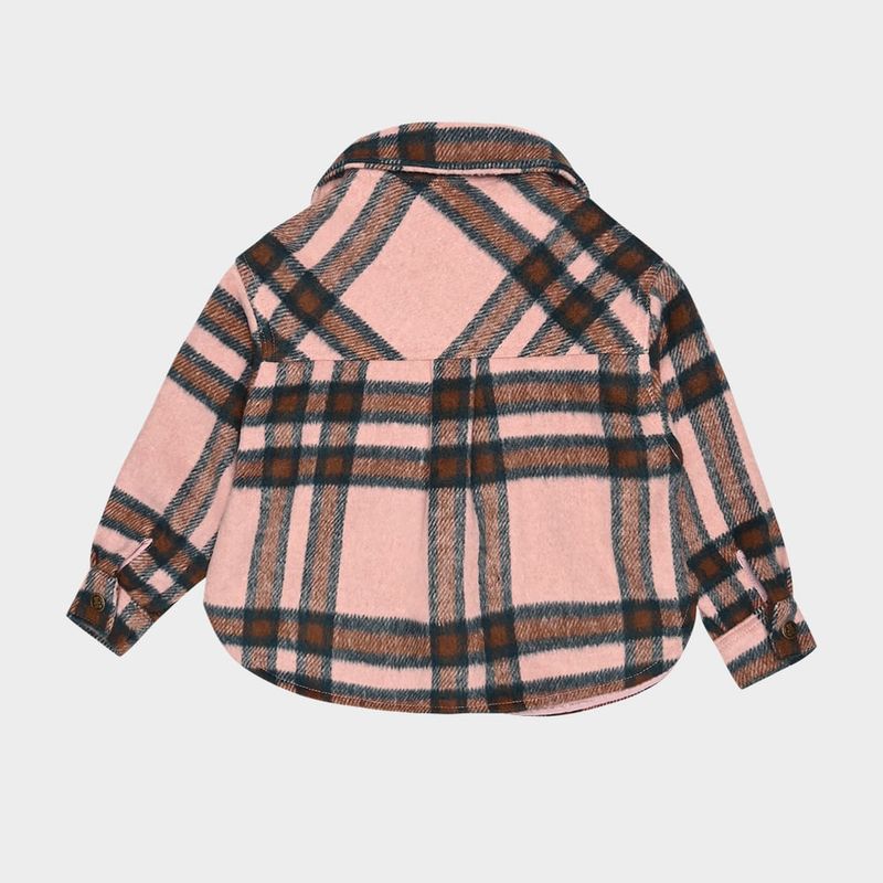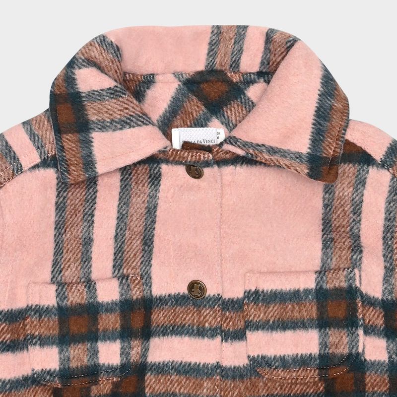 O casaco infantil feminino em lã xadrez combina estilo clássico com toque moderno, ideal para aquecer com charme os dias frios. Com tonalidade rosa claro e padronagem xadrez, a peça traz uma combinação sofisticada e delicada, perfeita para meninas que esbanjam personalidade e estilo. Seu caimento estruturado e tecido encorpado valorizam o visual e proporcionam conforto térmico com um toque fashionista.