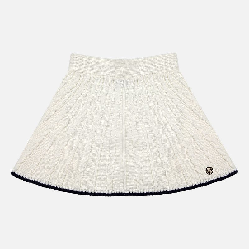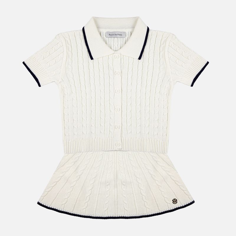 Conjunto Bebê Feminino Blusa e Saia tricot trançado em desenho clássico é o destaque deste conjunto bebê feminino, composto por blusa em tricot de manga curta com gola polo e botões frontais e saia em tricot com modelagem rodada.