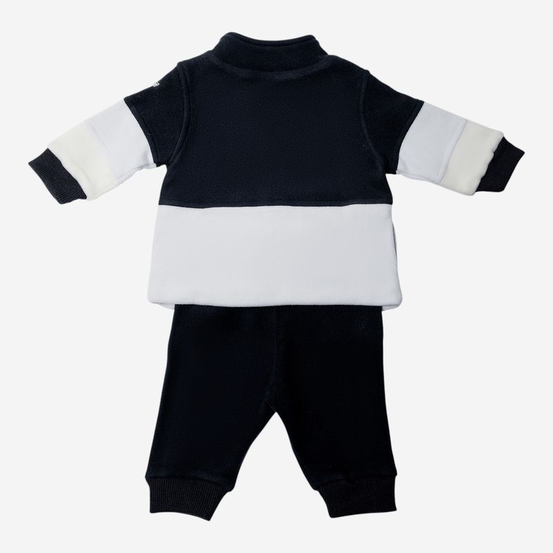O Conjunto Bebê é composto por duas peças essenciais: jaqueta e calça confeccionadas em microsoft macio e aconchegante.