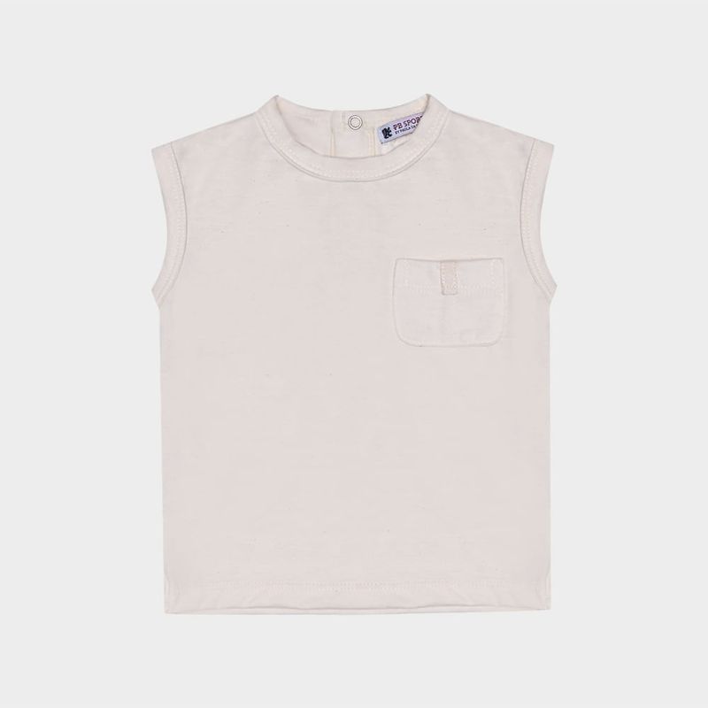A regata em tom off white traz design clean com bolso frontal e fechamento posterior por botão de pressão, que facilita ao vestir.