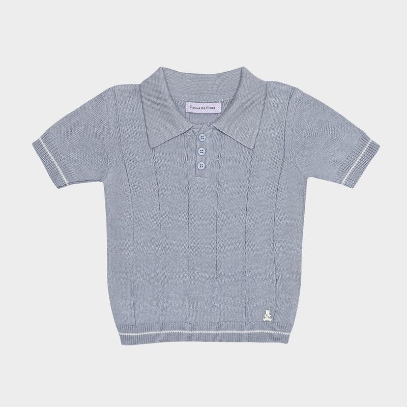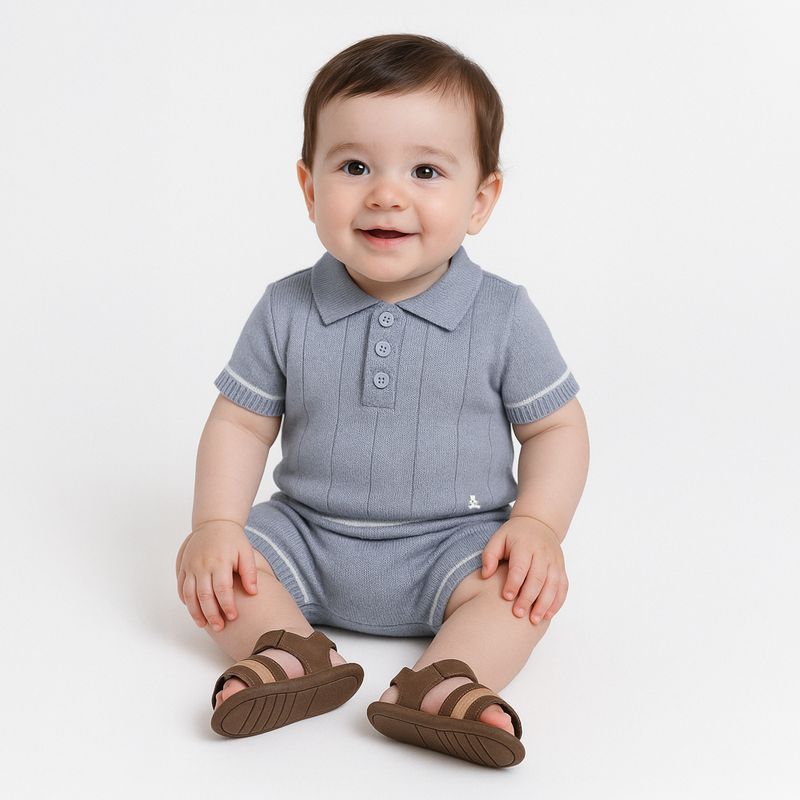 Esse conjunto de tricô para bebê menino é a escolha perfeita para compor um visual elegante e acolhedor nos dias mais fresquinhos. Em uma suave tonalidade azul clarinho, transmite leveza e serenidade, enquanto o tricô encorpado com toque macio garante o conforto ideal para o bebê. O conjunto apresenta acabamento canelado nos punhos e barra, com frisos delicados que valorizam o caimento e adicionam charme à peça. Os botões em tom coordenado facilitam o vestir e complementam a estética sofisticada.