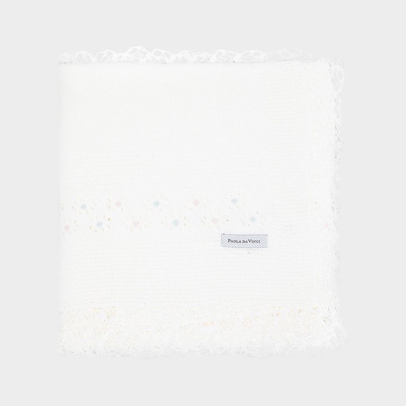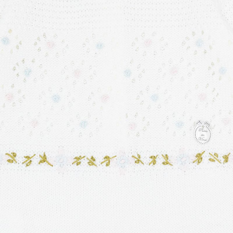 Conjunto Macacão e Manta Tricot Produzido em tricot macio e aconchegante, este conjunto traz um charme atemporal com bordados florais feitos à mão em tons suaves e acabamento refinado.