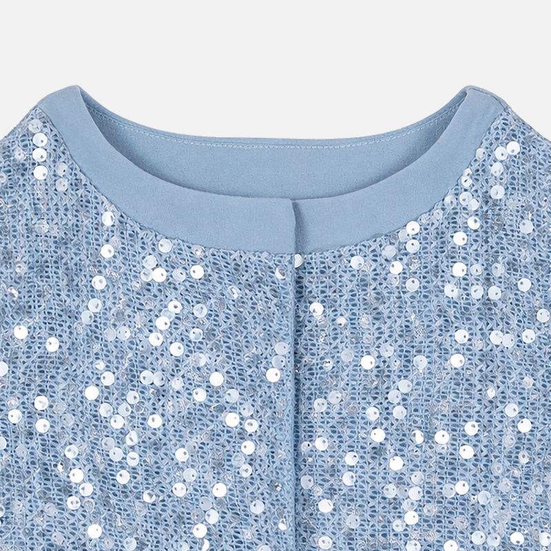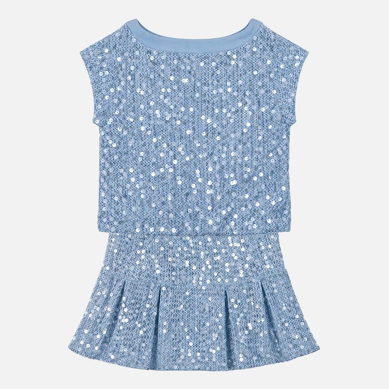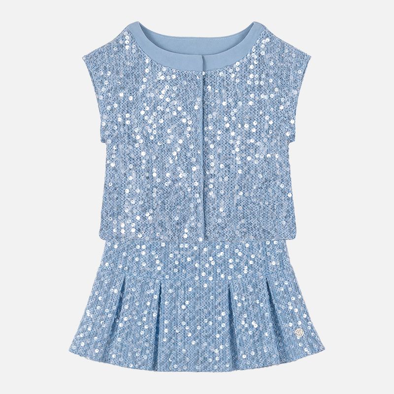 Composto por blusa em crochê paetê e saia com pregas, o conjunto apresenta caimento leve e movimento delicado, ideal para festas e ocasiões especiais. Uma peça que une elegância, delicadeza e o padrão refinado característico da Paola da Vinci.