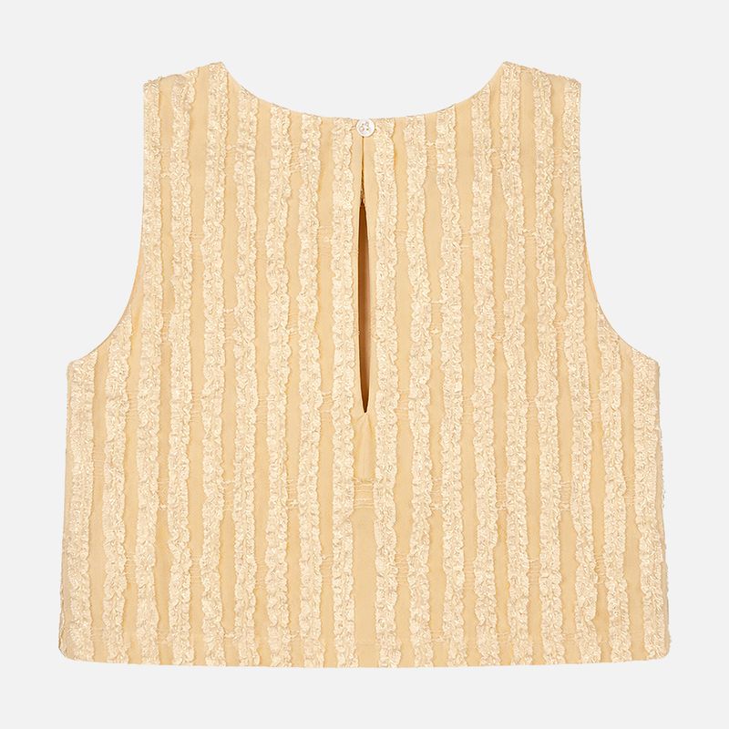 Conjunto festa infantil em tule amarelo, delicado e sofisticado para ocasiões especiais. A blusa em tule com textura trabalhada traz leveza e um efeito visual encantador, enquanto o acabamento refinado garante conforto e caimento impecável. A tonalidade amarelo suave ilumina a produção com elegância, criando um visual romântico e atemporal.
