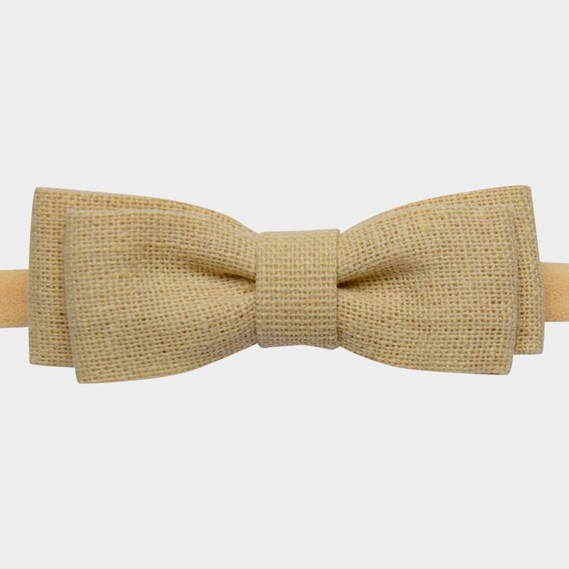 Faixa de bebê confeccionada em meia macia, com aplicação de laço duplo reto em linho, que confere um visual delicado e sofisticado. A textura natural do linho valoriza o acabamento e destaca o design clássico e atemporal da peça.