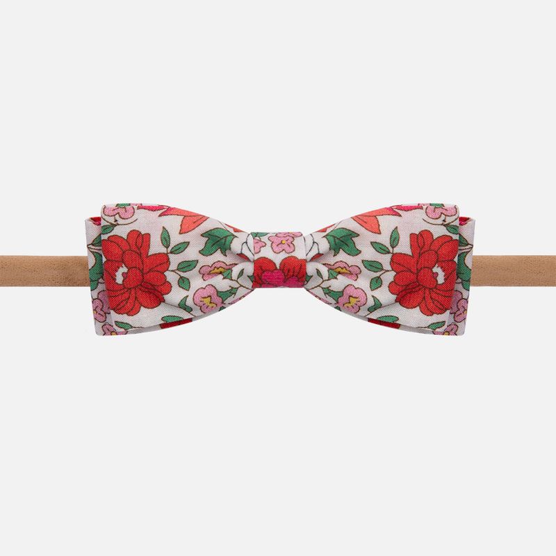 Faixa de bebê confeccionada em tecido leve e macio, com estampa floral delicada e aplicação de laço central, que adiciona charme e suavidade à peça. O acabamento cuidadoso valoriza o design clássico, ideal para os primeiros looks da bebê.