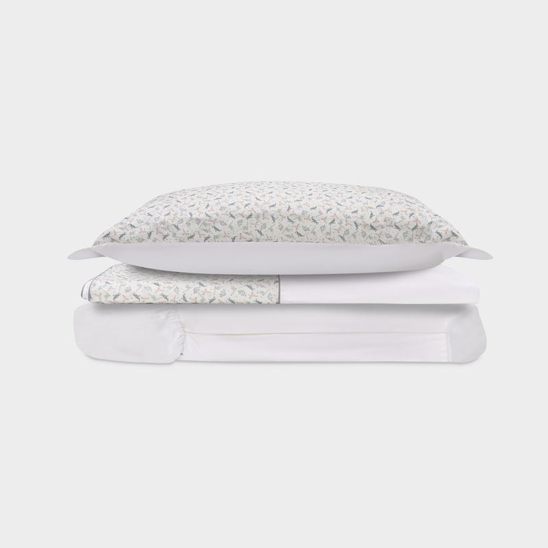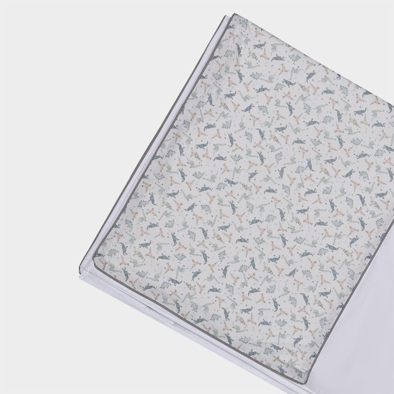 Com estampa delicada de dinossauro, o conjunto une leveza e sofisticação, trazendo charme ao enxoval infantil. O acabamento refinado valoriza cada detalhe, garantindo um visual elegante e atemporal para o quarto.