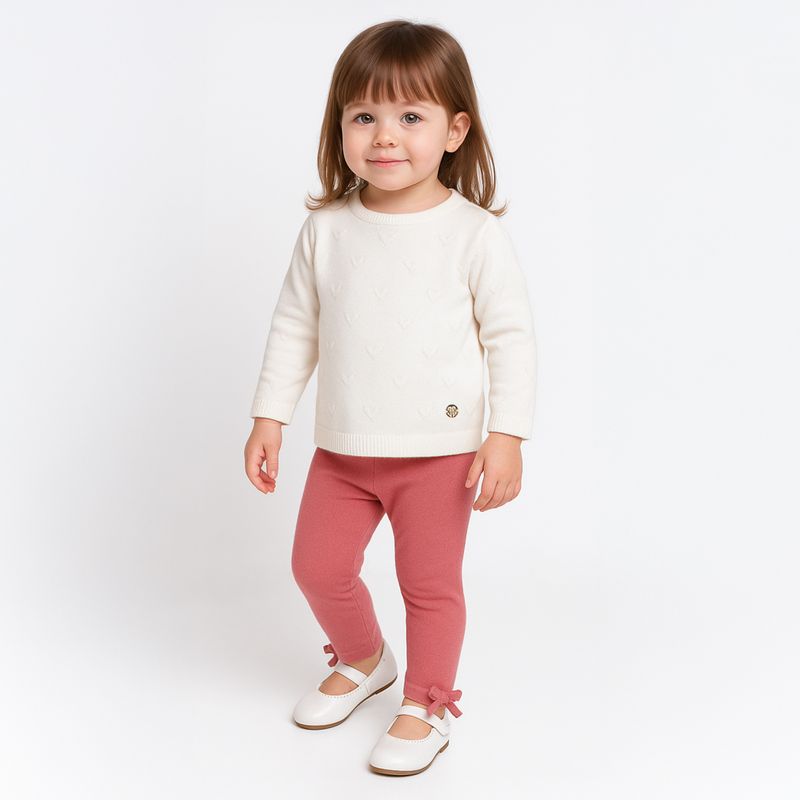 Legging de Bebê Feminina em Tricot com Laço Decorativo