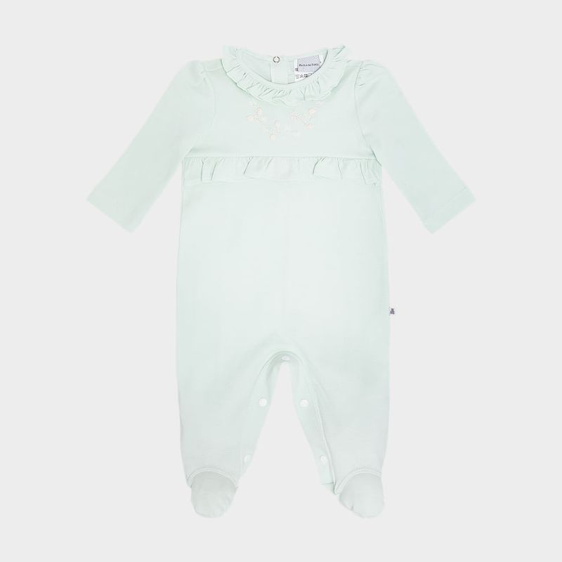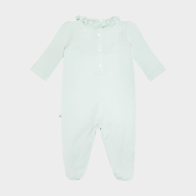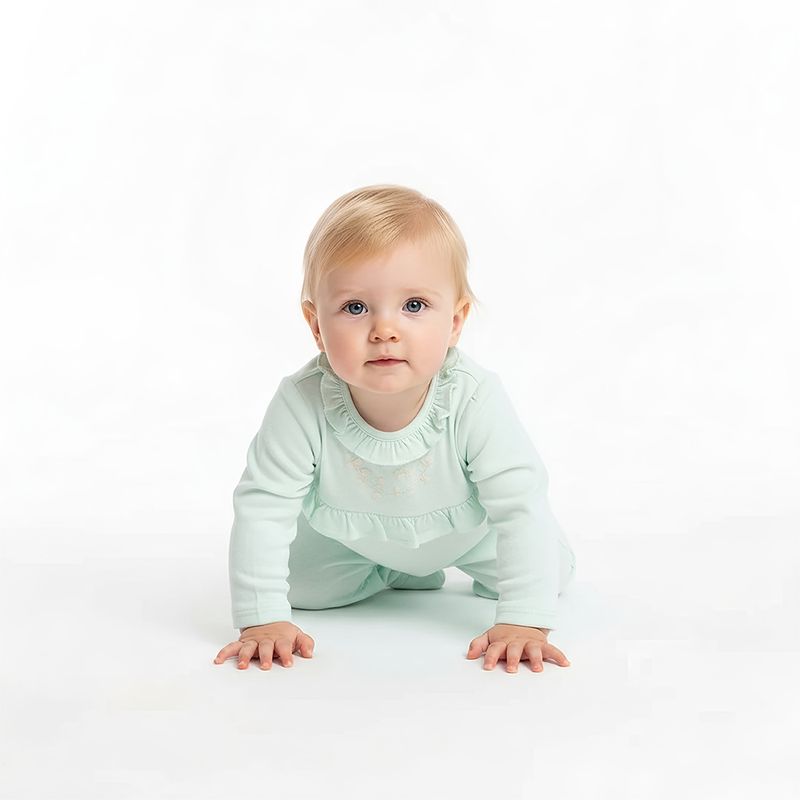O Macacão com babado e flores é uma peça delicada e sofisticada, perfeita para momentos especiais e para o dia a dia com muito conforto. Confeccionado em malha de algodão egípcio, conhecida pela maciez e durabilidade, proporciona toque extremamente suave sobre a pele sensível do bebê.