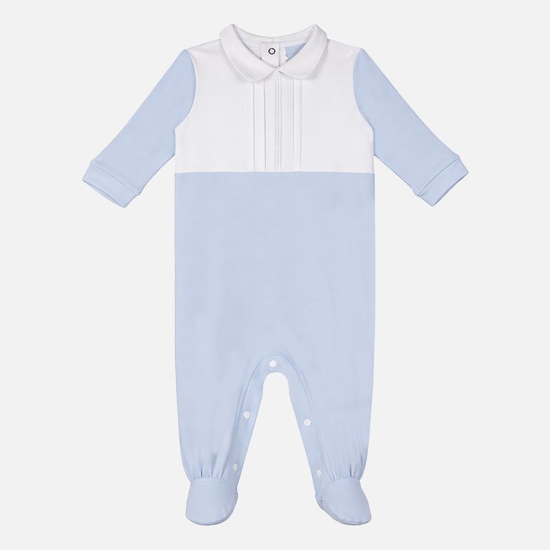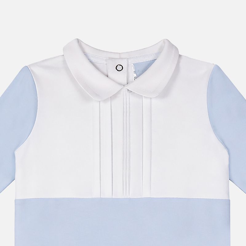 Macacão bebê em algodão egípcio Gold, com elegante bicolor branco e azul, é sinônimo de conforto absoluto e sofisticação para os primeiros meses. O tecido de algodão egípcio premium oferece toque extremamente macio, alta respirabilidade e cuidado especial com a pele sensível do bebê, enquanto as delicadas pregas frontais e a gola clássica conferem um visual refinado e atemporal.
