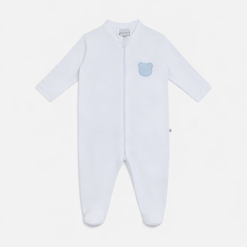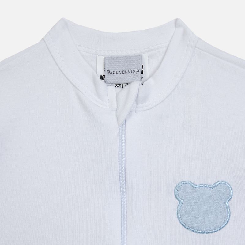 O detalhe do urso azul bordado adiciona charme clássico, trazendo a identidade elegante e acolhedora da Paola da Vinci. O zíper frontal proporciona praticidade nas trocas, enquanto os pezinhos fechados mantêm o bebê quentinho durante todo o uso. A modelagem leve e o acabamento refinado tornam este macacão uma escolha perfeita para o enxoval, garantindo conforto e elegância em momentos de descanso e passeios tranquilos.