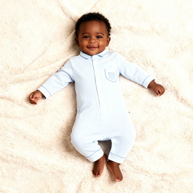 O macacão traduz a elegância minimalista em uma peça clássica e atemporal. Confeccionado em algodão egípcio premium, conhecido por sua maciez e toque sedoso, oferece máximo conforto e respirabilidade para a pele delicada do bebê.