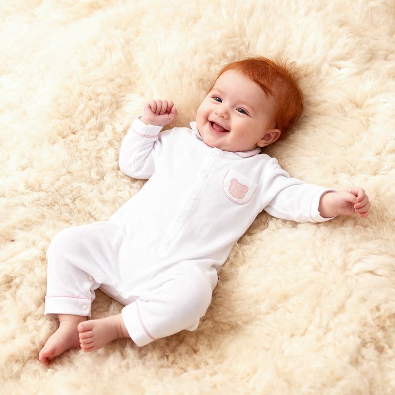 O macacão traduz a elegância minimalista em uma peça clássica e atemporal. Confeccionado em algodão egípcio premium, conhecido por sua maciez e toque sedoso, oferece máximo conforto e respirabilidade para a pele delicada do bebê.