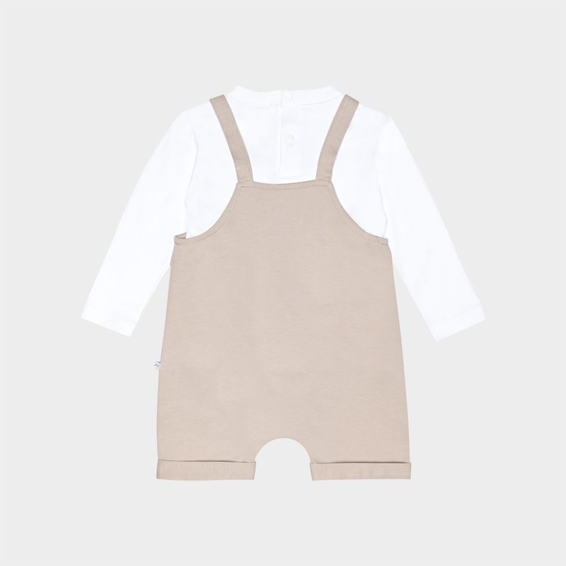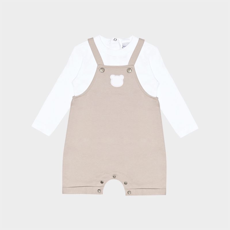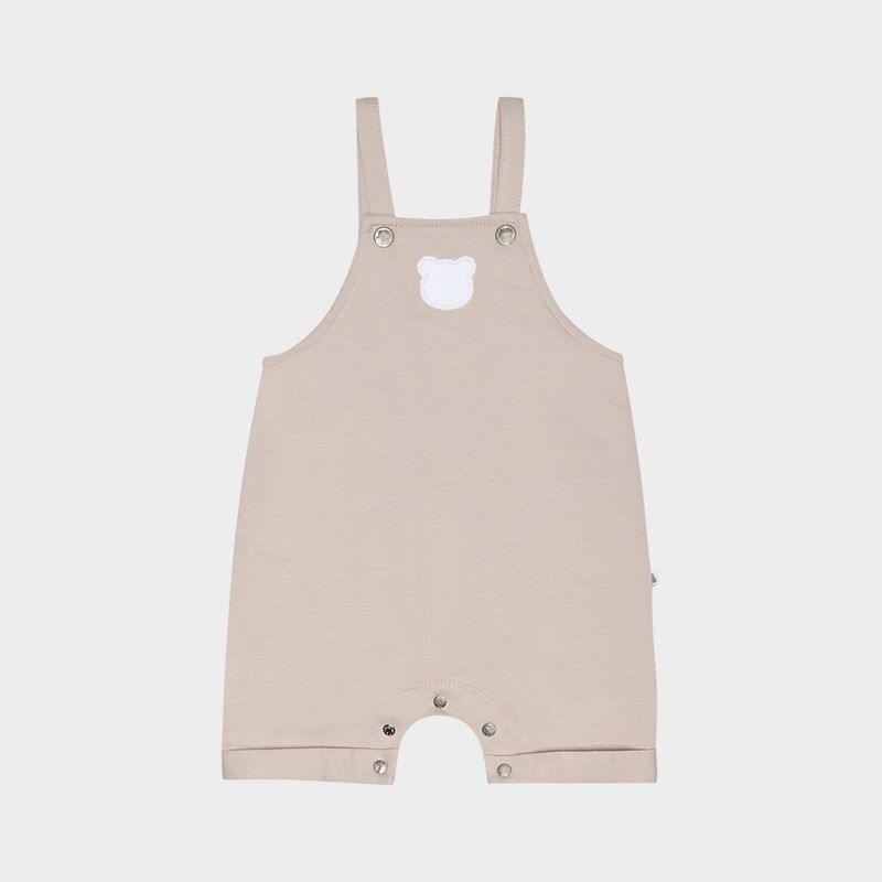 Macacão Curto Bebê Masculino Jardineira Bordado Urso - AREIA