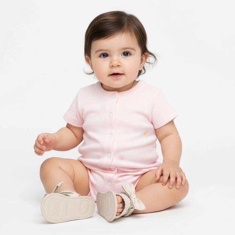 O macacão de bebê feminino apresenta detalhes delicados e sua composição em algodão oferece o melhor toque para a pele, tudo isso com as certificações Sou de Algodão, Sou ABR e BCI que reforçam o compromisso com uma produção mais ética e sustentável. Conta com mangas curtas, bordados de flores com cores em destaque e sua abertura por botões de pressão oferecem ótima praticidade no dia a dia.