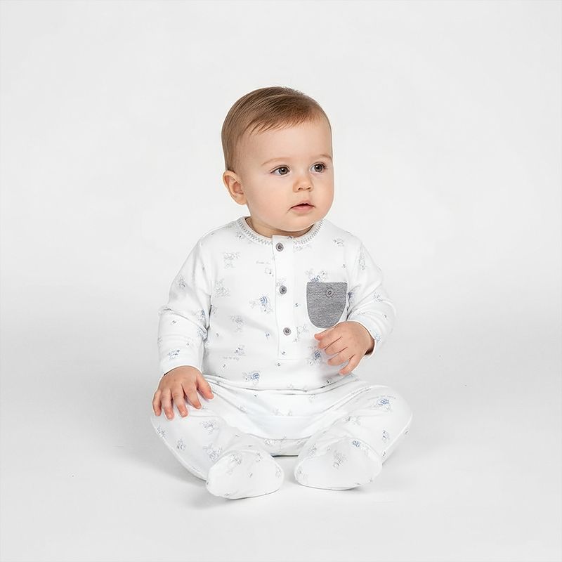 Com estampa amável de coelhos ilustrando uma estética delicada, este modelo de macacão de bebê masculino desenvolvido em algodão egípcio oferece proteção UVA/UVB e perfeita suavidade contribuindo para o resultado de uma superfície com toque extremamente agradável. Possui meia vista com abertura, bolsinho charmoso e abertura prática por botões de pressão que geram facilidade ao vestir a criança no dia a dia.