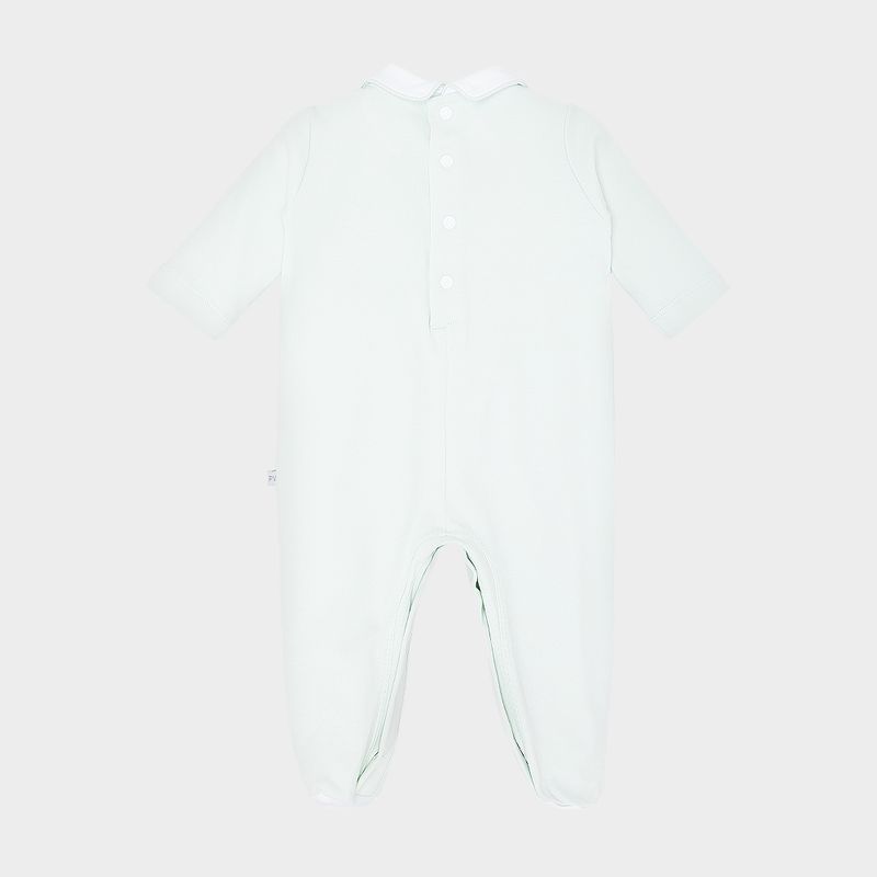 A peça conta com gola polo, mangas longas e abertura nas costas e entrepernas com botões de pressão, facilitando o vestir e as trocas com praticidade e elegância.