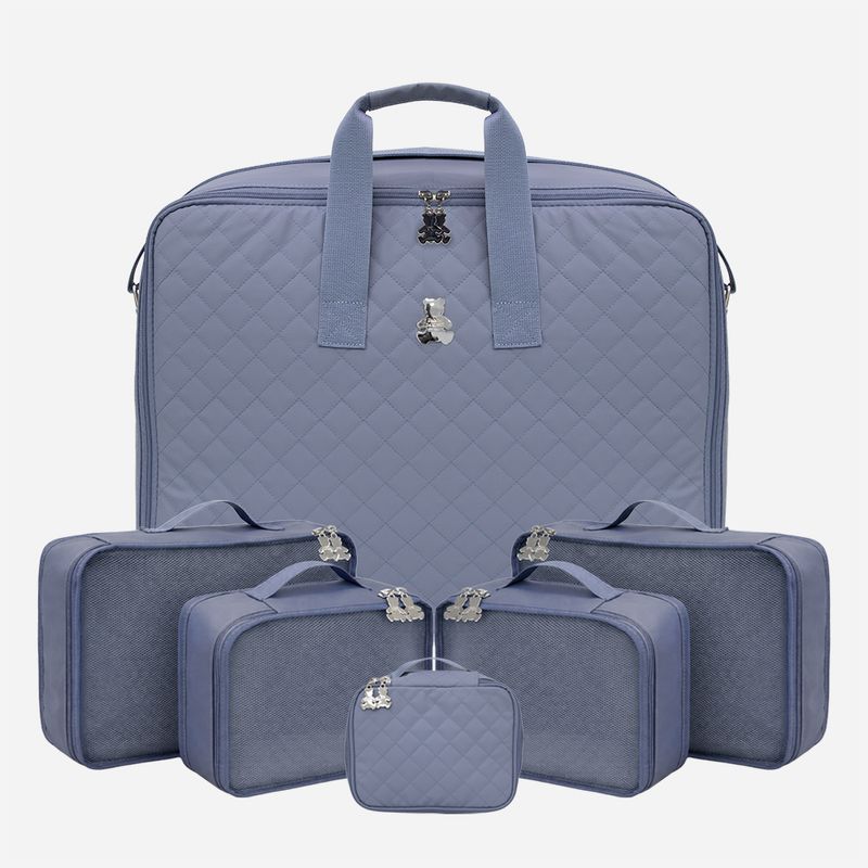 Kit com cinco organizadores internos, em diferentes tamanhos, com fechamento em zíper e viseira em tela, que facilitam a visualização e mantêm roupas, acessórios, fraldas e itens de higiene sempre no lugar. Um conjunto pensado para a chegada do bebê, para viagens e para acompanhar a família ao longo do tempo, unindo funcionalidade e sofisticação Paola da Vinci.