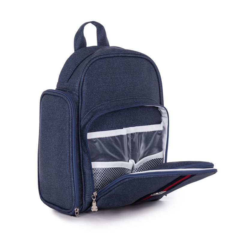 Indispensável no dia a dia, este modelo de mochila de bebê é confeccionada em material emborrachado de ótima qualidade que conta com repartições desenvolvidas para facilitar a vida das mamães no momento de transportar os utensílios essenciais do bebê. A mochila conta com acabamento em matelassê com faixa de gorgurão em destaque, alças ajustáveis, bolsinhos térmicos nas laterais que protegem a temperatura dos alimentos, compartimento com divisórias, trocador portátil e nécessaire completando este lindo conjunto.