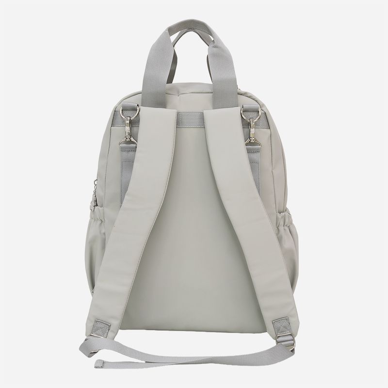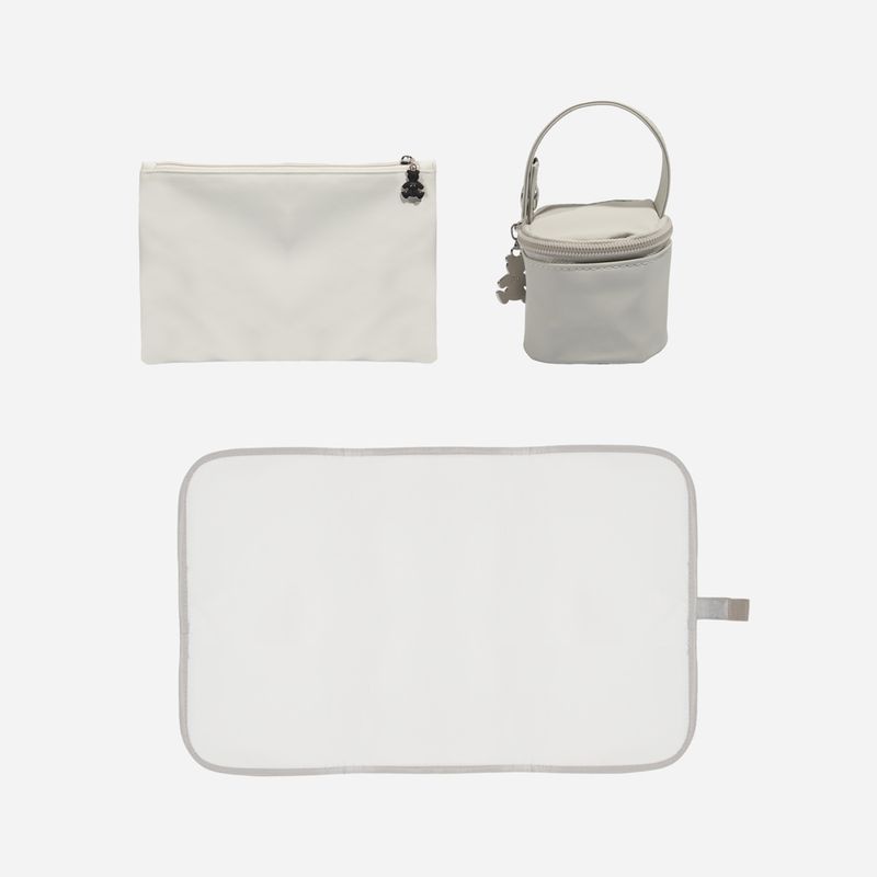 Mochila equipada com porta-chupeta, necessaire e trocador portátil amplo, além de alças reforçadas, alça longa regulável e alça para apoio em carrinhos, permitindo o uso confortável nas costas ou na mão. Produzida em material durável e fácil de limpar, une leveza e conforto.