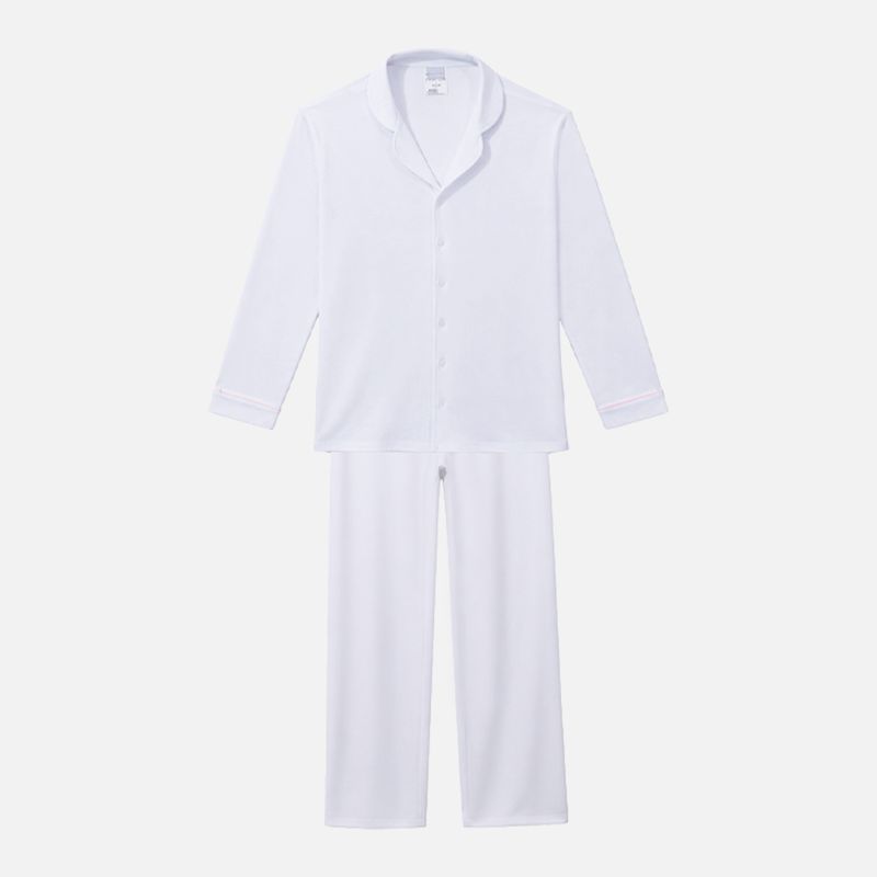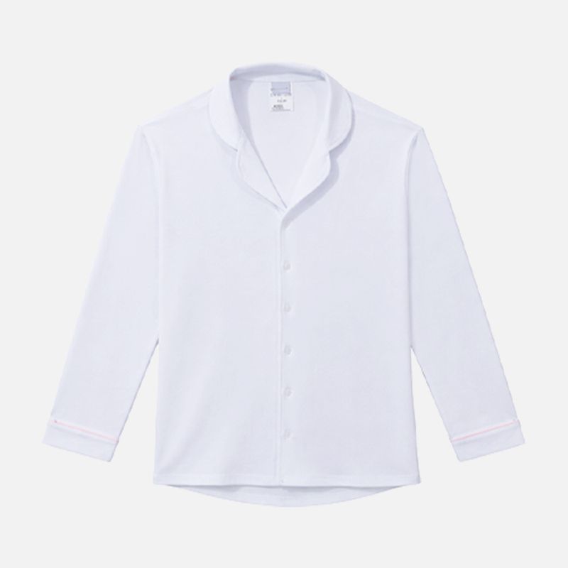 Pijama adulto Egípcio Gold branco, elegante e atemporal, desenvolvido para proporcionar conforto superior e bem-estar em todos os momentos de descanso. Com design clássico, o conjunto é composto por camisa de mangas longas com gola tradicional, abotoamento frontal e bolso, além de calça longa com cós elástico e ajuste por amarração, garantindo praticidade e excelente vestibilidade.