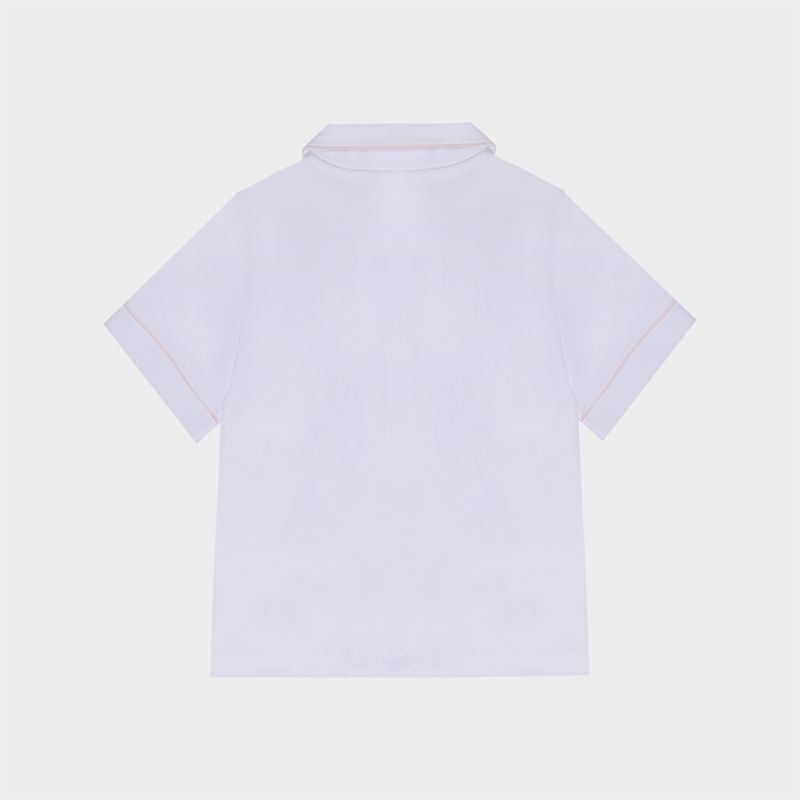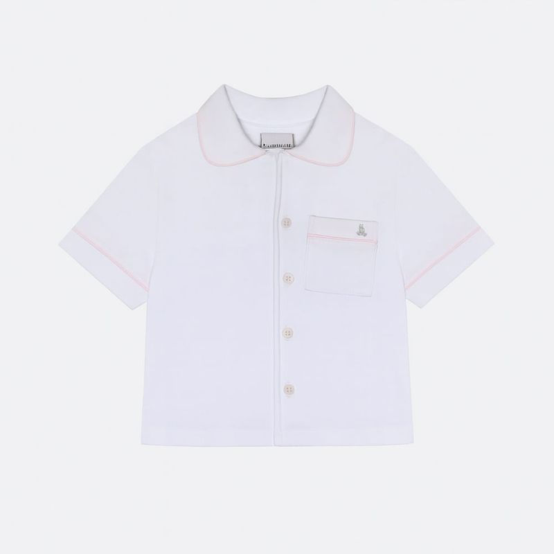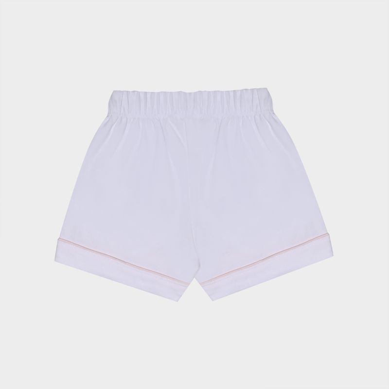 O modelo traz camisa com gola arredondada, abotoamento frontal e bolso delicado, além de shorts com cós elástico, proporcionando liberdade de movimento e aconchego durante toda a noite.