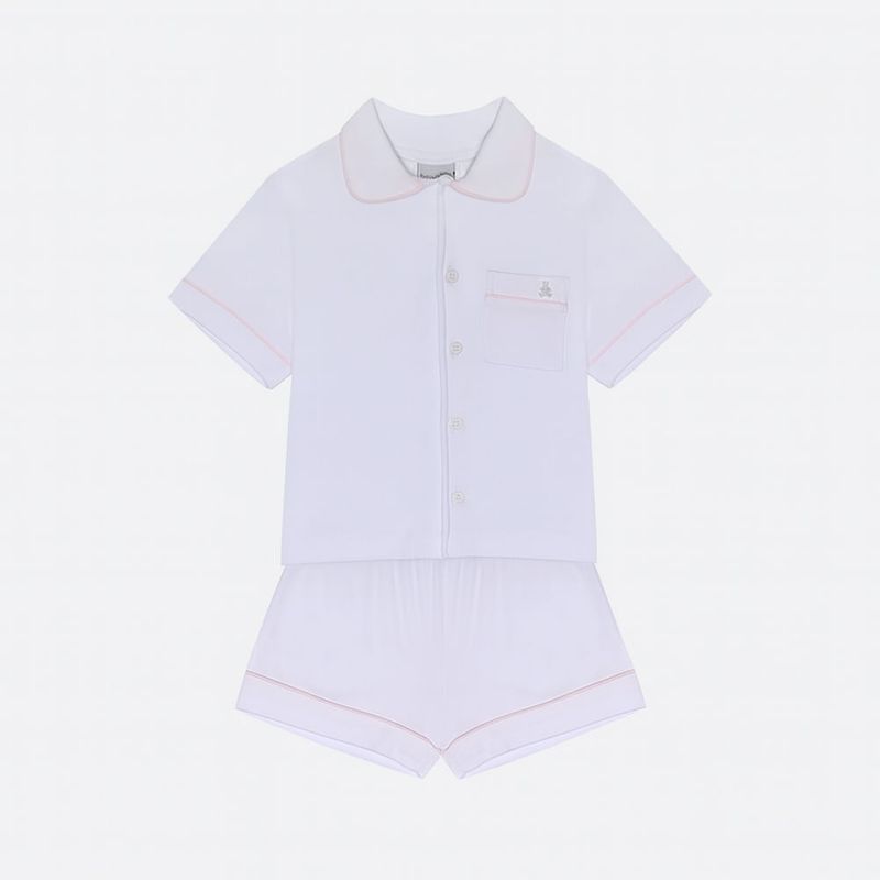 Pijama bebê em algodão branco com frisos rosa é sinônimo de conforto, maciez e elegância para o momento do soninho. Confeccionado em malha de algodão, o tecido é extremamente suave ao toque, hipoalergênico e respirável, ideal para a pele delicada do bebê.