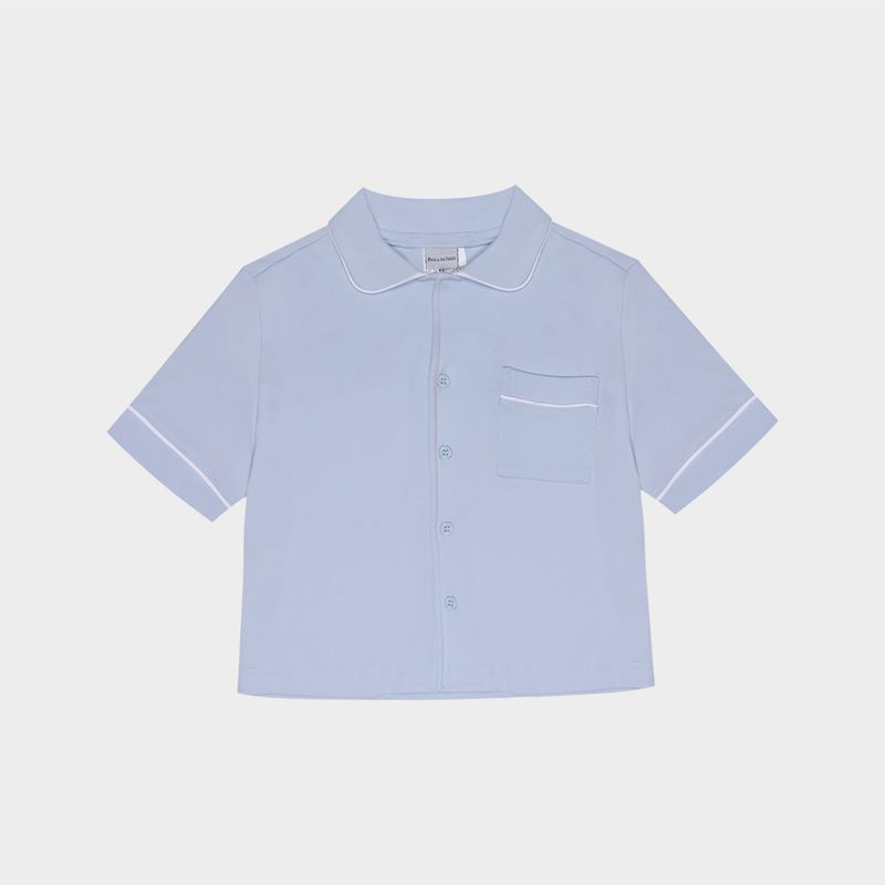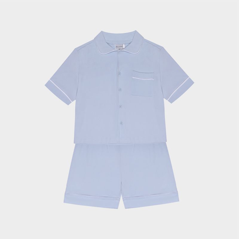 Pijama infantil em algodão egípcio azul com frisos brancos é a definição de conforto e elegância para o soninho. Confeccionado em malha de algodão egípcio premium, reconhecida por sua maciez e alta durabilidade, o conjunto proporciona um toque delicado e fresco sobre a pele.