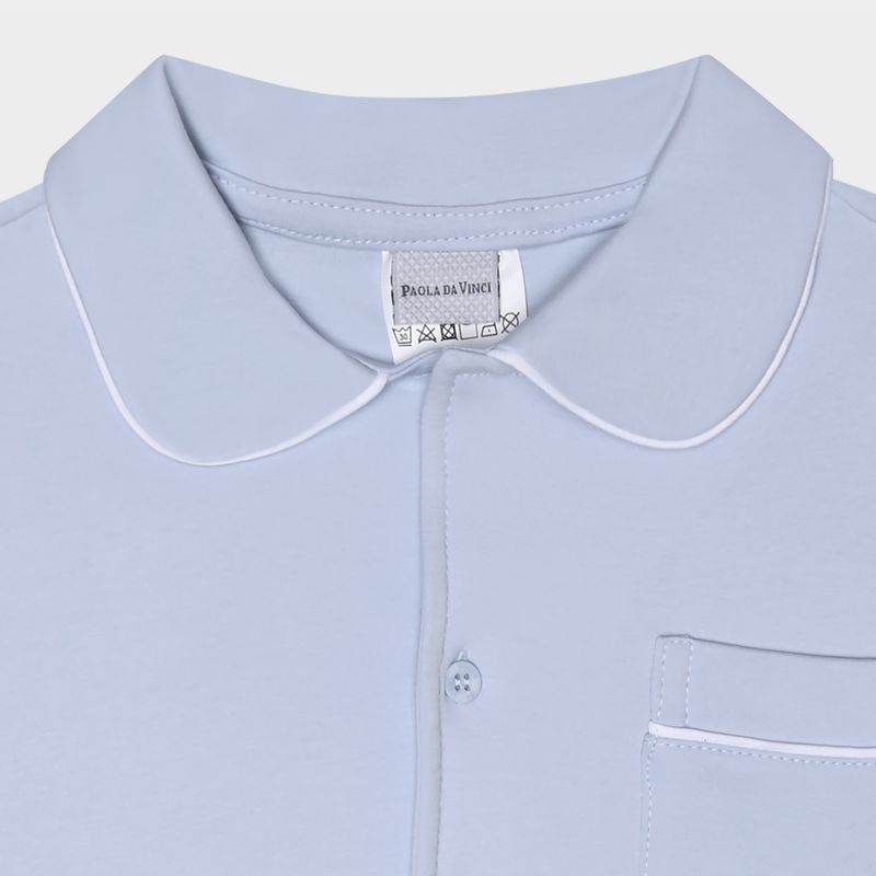 Com acabamentos refinados em friso branco, o modelo une praticidade e charme, sendo ideal para noites tranquilas e aconchegantes. A qualidade impecável da Paola da Vinci está presente em cada detalhe, tornando este pijama egípcio uma escolha perfeita para o conforto diário com um toque de sofisticação.