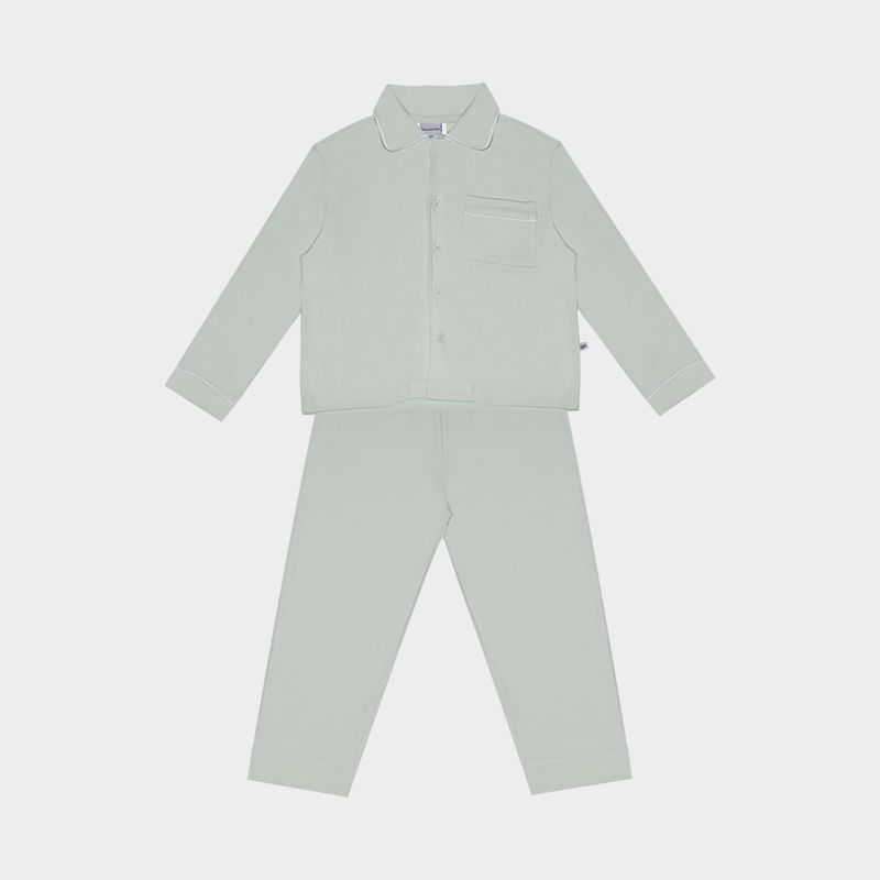 Pijama infantil em algodão egípcio verde com frisos brancos combina conforto e sofisticação para noites tranquilas e aconchegantes. Confeccionado em malha de algodão egípcio premium, o tecido é conhecido pela maciez, leveza e durabilidade, oferecendo o toque suave ideal para a pele delicada das crianças.