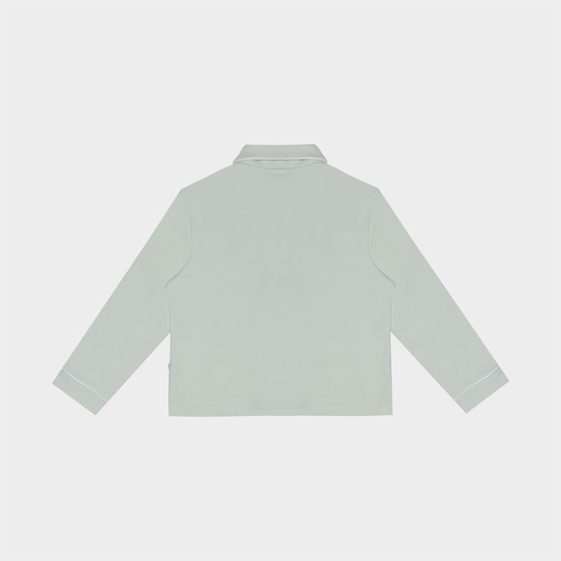 O conjunto traz camisa de manga longa com gola arredondada e bolso frontal, além de calça com cós elástico, que garante liberdade de movimento e ajuste perfeito. Os frisos brancos sutis reforçam o acabamento refinado e atemporal característico da Paola da Vinci, resultando em uma peça elegante, confortável e perfeita para o descanso diário.
