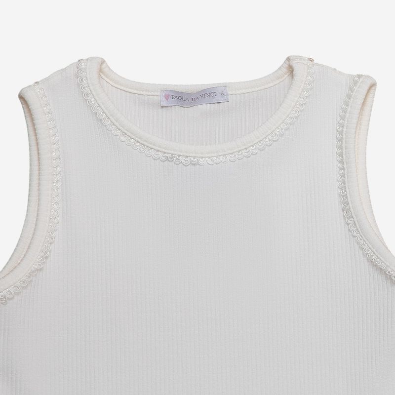 O charme especial está no delicado detalhe de renda aplicado no decote e nas cavas, que valoriza o design minimalista e atemporal. Possui fechamento posterior por botão de pérola, que facilita o vestir, e acabamento impecável que garante durabilidade.