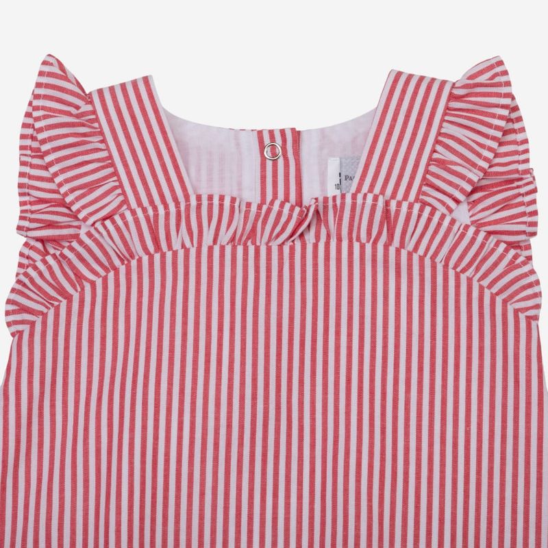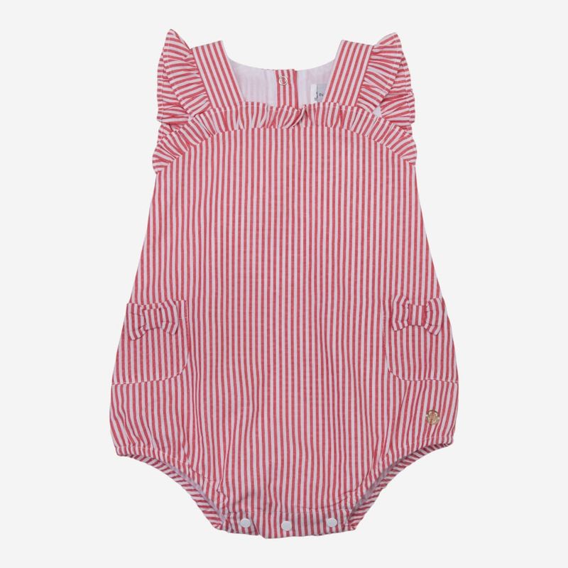 O Romper Listrado é a escolha perfeita para unir conforto e charme nos dias mais quentes. Confeccionado em 100% algodão, o tecido leve e respirável proporciona bem-estar à pele sensível do bebê, enquanto a estampa listrada em vermelho e branco traz um toque alegre e sofisticado.