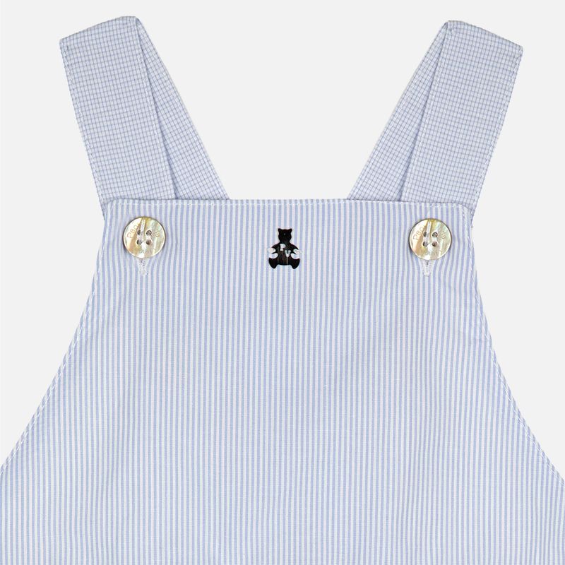Romper bebê listrado confeccionado em tecido leve e macio, ideal para proporcionar conforto, frescor e liberdade de movimentos no dia a dia do bebê. O listrado azul claro traz um visual clássico e delicado, perfeito para ocasiões especiais ou momentos casuais, mantendo a elegância suave característica da Paola da Vinci.